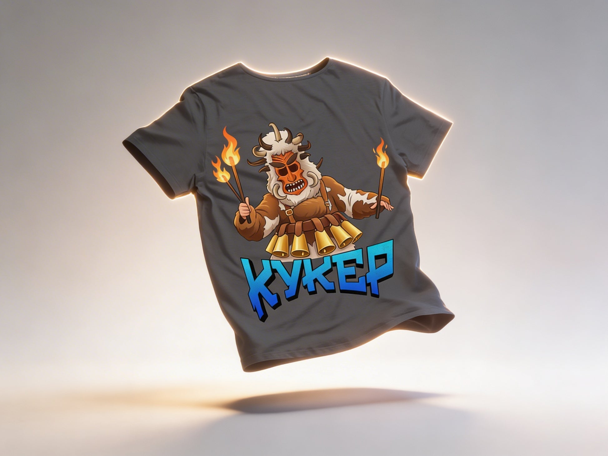 Потопете се в древната сила на българската традиция с тениската „КУКЕР“ — символ на защита, трансформация и първична жизнена енергия. Дизайнът изобразява могъщ кукер, облечен в автентично кожено облекло, украсен с огромни чанове, които от векове ехтят, за да прогонят злото и да събудят новото начало. Плашещата маска не е просто украшение — тя е портал към мистичния свят на нашите предци, носител на сила, смелост и духовна защита.